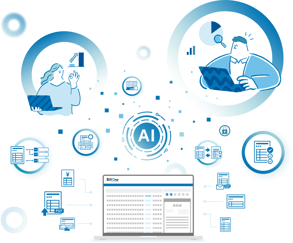 データや処理の正確性を追求し、AI技術をはじめ、さまざまなテクノロジーを活用しています。日常的にBill Oneで業務を進めるだけで、AI技術やテクノロジーを業務に最適化された形で取り入れることができ、経理AXが実現します。