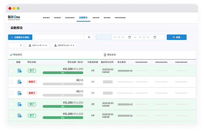 請求書明細の構造データ化と自社開発の照合ロジックによって、総額・明細単位で自動照合します。