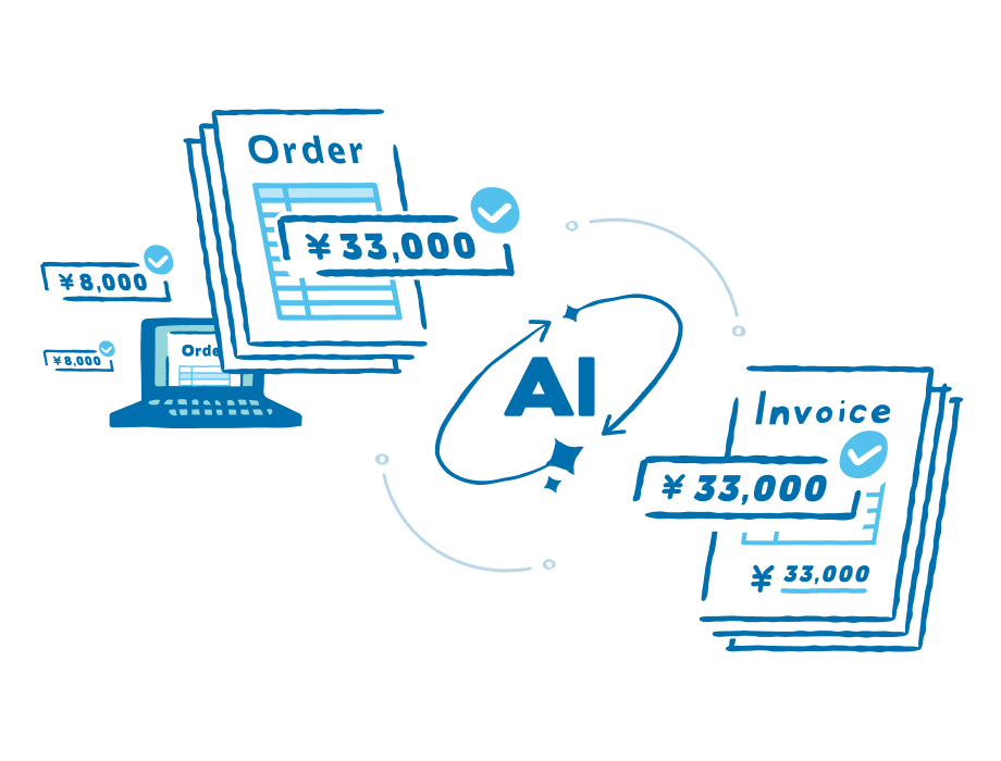 納品・検収データなどの照合対象データと請求書の自動照合を総額・明細単位で実行します。目視で行っていた作業が大きく効率化されます。