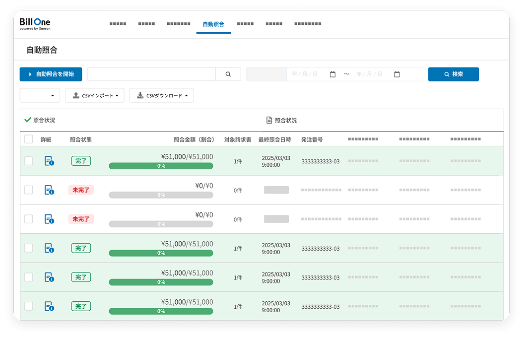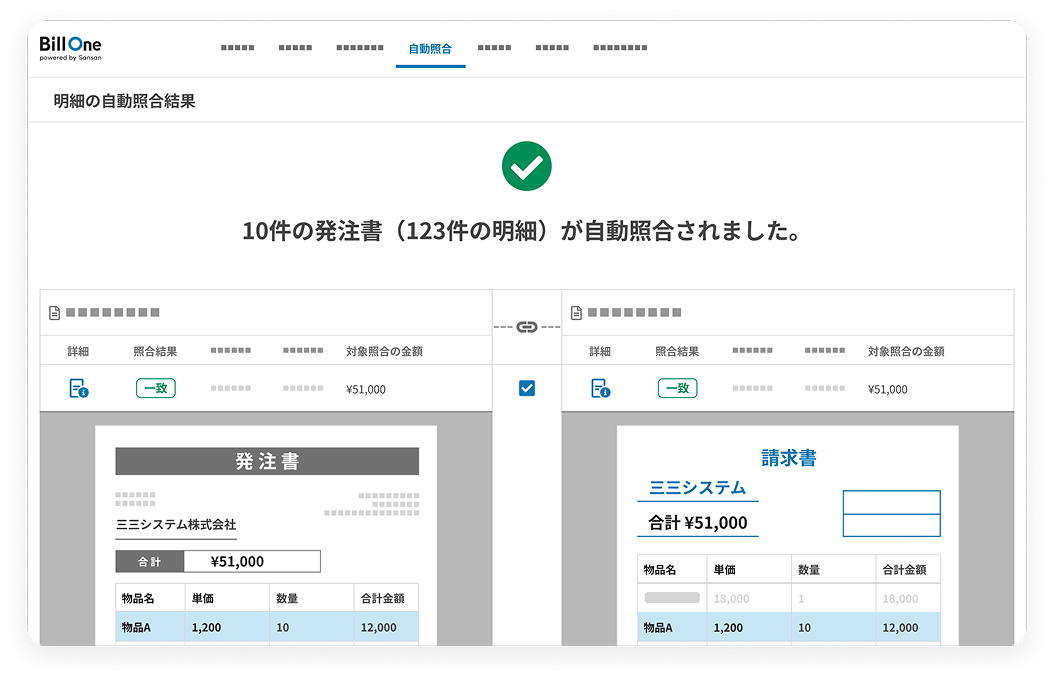 総額・明細単位で自動照合され、