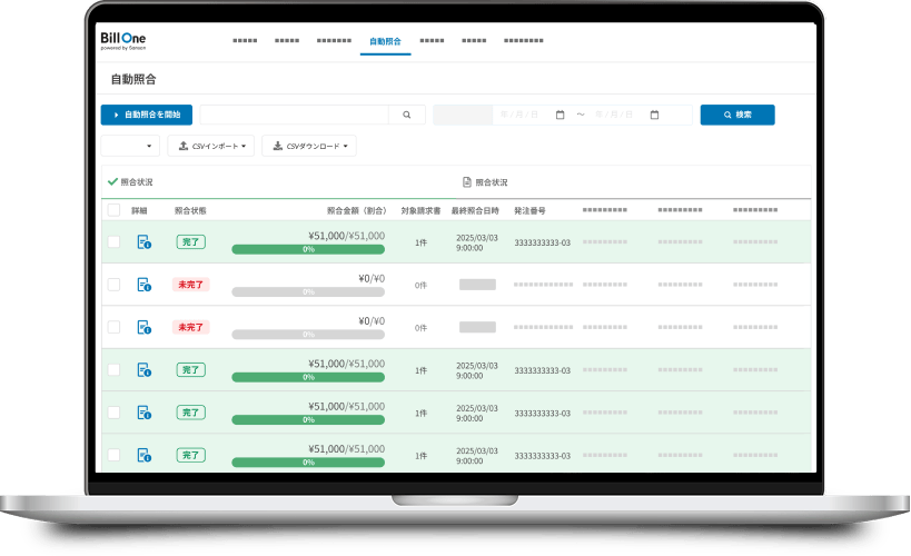 請求書の自動照合を総額・明細単位で実行。