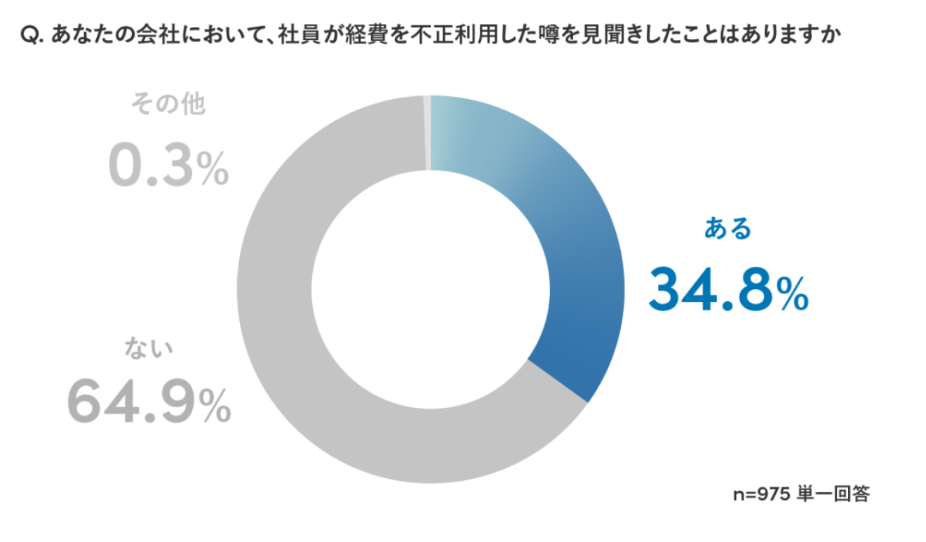 毎月立替精算を1件以上しているビジネスパーソン(経理・非経理問わず)に対して、自社従業員による経費の不正利用を見聞きしたことがあるかという質問に対して、34.8%が「ある」と回答しています。