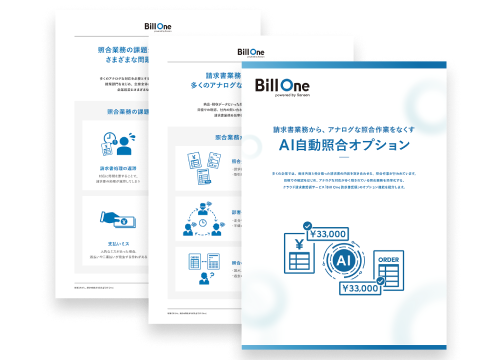 請求書と納品・検収データを自動で照合する、「AI自動照合オプション」についてご説明した資料です。